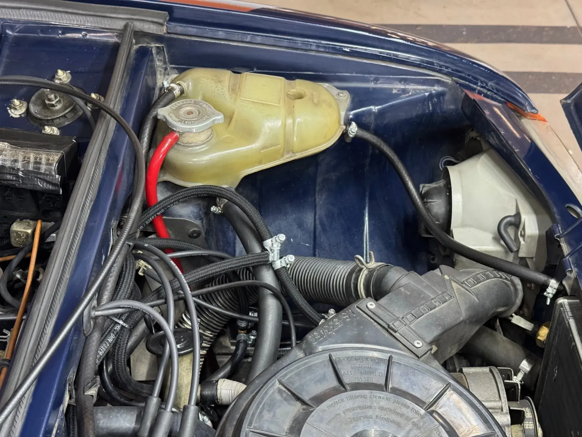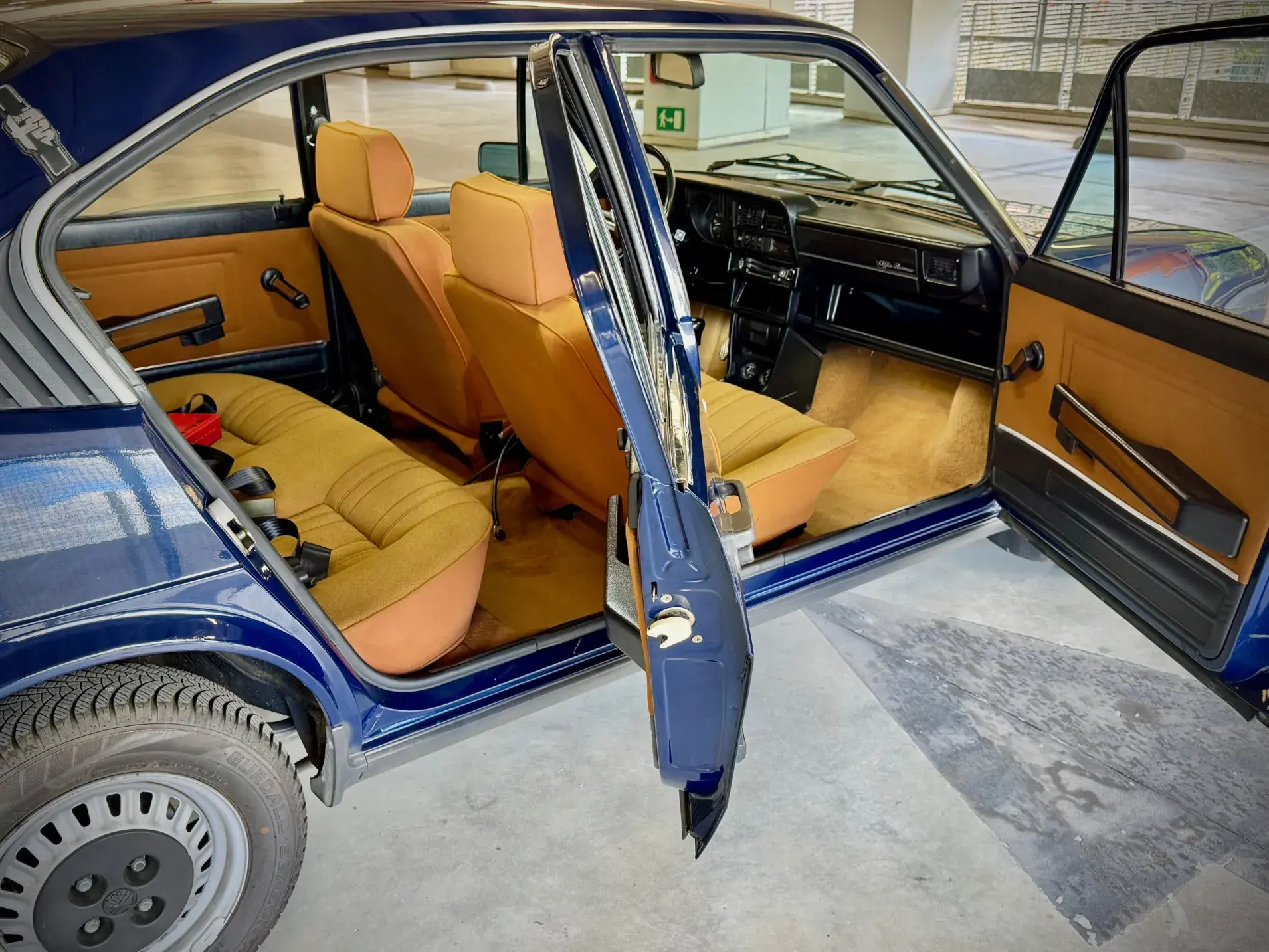 Elle est dans un état absolument d’origine, tant sa peinture (Blu Posillipo AR 355) que sa sellerie. Cette AlfaSud n’a connu que deux propriétaires en Italie avant de rejoindre la Belgique en 2021.