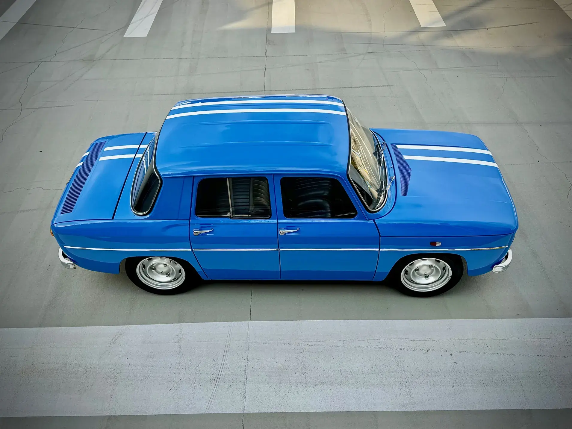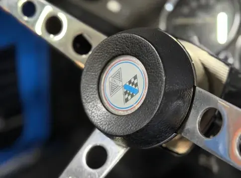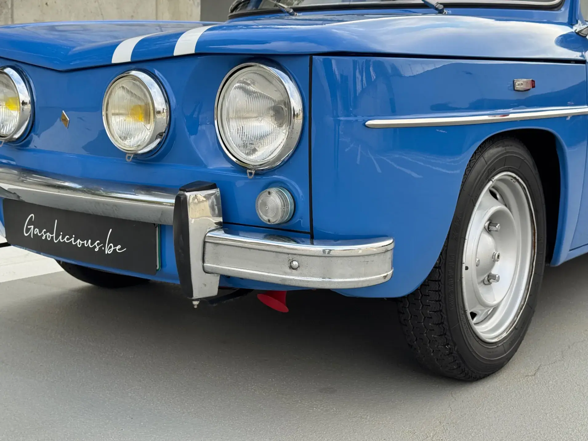 Notre Renault 8 Gordini de mai 1967 se présente dans sa configuration d'origine, dotée du légendaire moteur 1255 cm³ associé à la boîte 5 rapports, et alimentée par deux carburateurs double corps Weber 40 DCOE, jantes tôle 15" et volant Quillery !