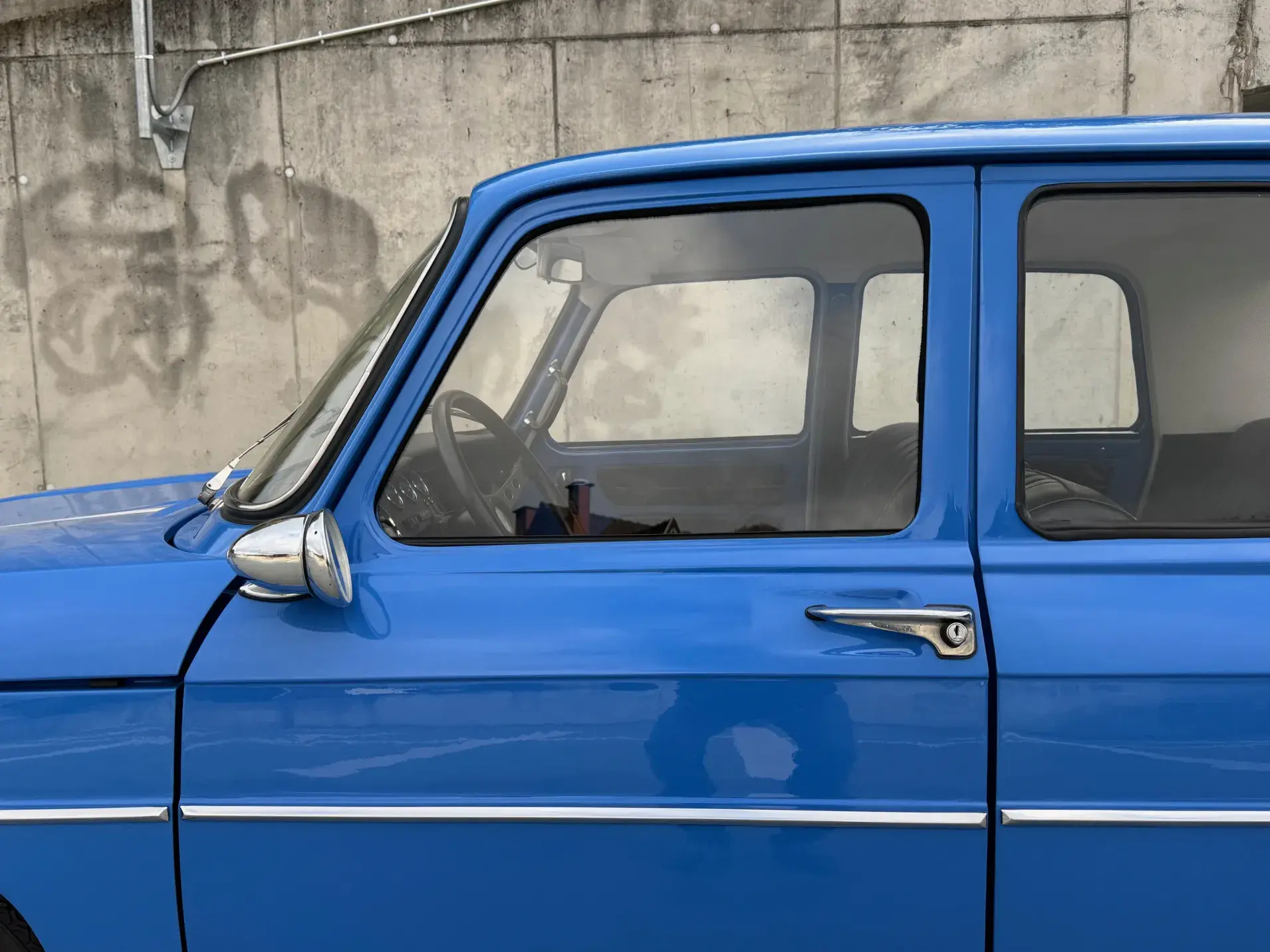 Sa conduite est pour le moins musclée lorsqu’on décide de se « cracher » dans les mains : quel caractère ! En revanche, comme toute voiture vintage en parfaite santé, il est possible — et surtout agréable — de musarder sur le couple. Sa restauration a été soignée, les liaisons au sol sont irréprochables, jusqu’à ses Michelin XZX 145 SR 15. Résultat : on en vient à apprécier les routes pavées, les ralentisseurs et autres imperfections de la chaussée, avalées avec confort et sérénité.