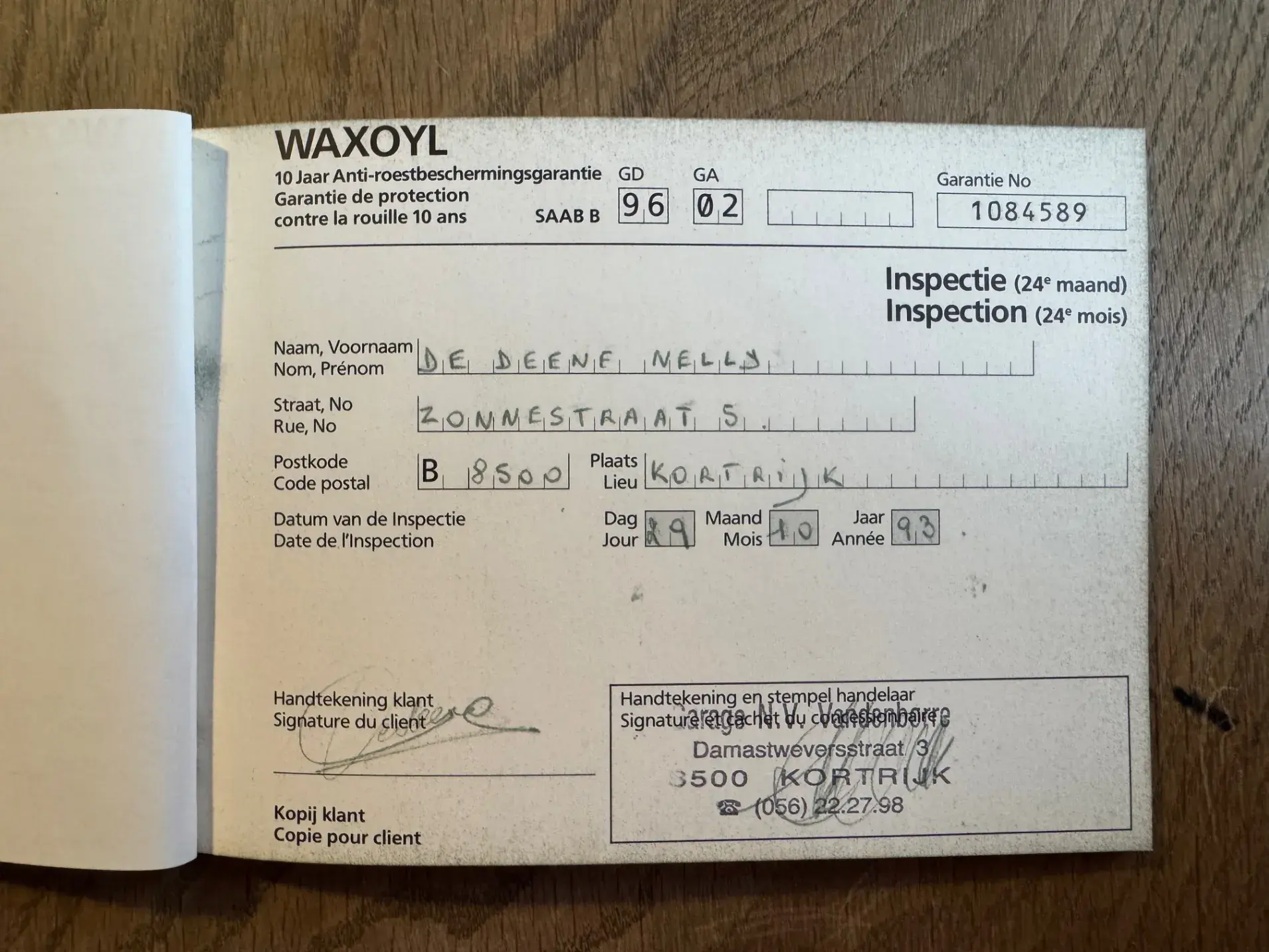 Son kilométrage est scrupuleusement documenté avec 33 relevés kilométriques. La voiture n'a jamais été restaurée et conserve son carnet de garantie anti-corrosion de 10 ans tamponné. Toute la documentation originale est incluse, soigneusement rangée dans sa pochette en cuir d'origine.